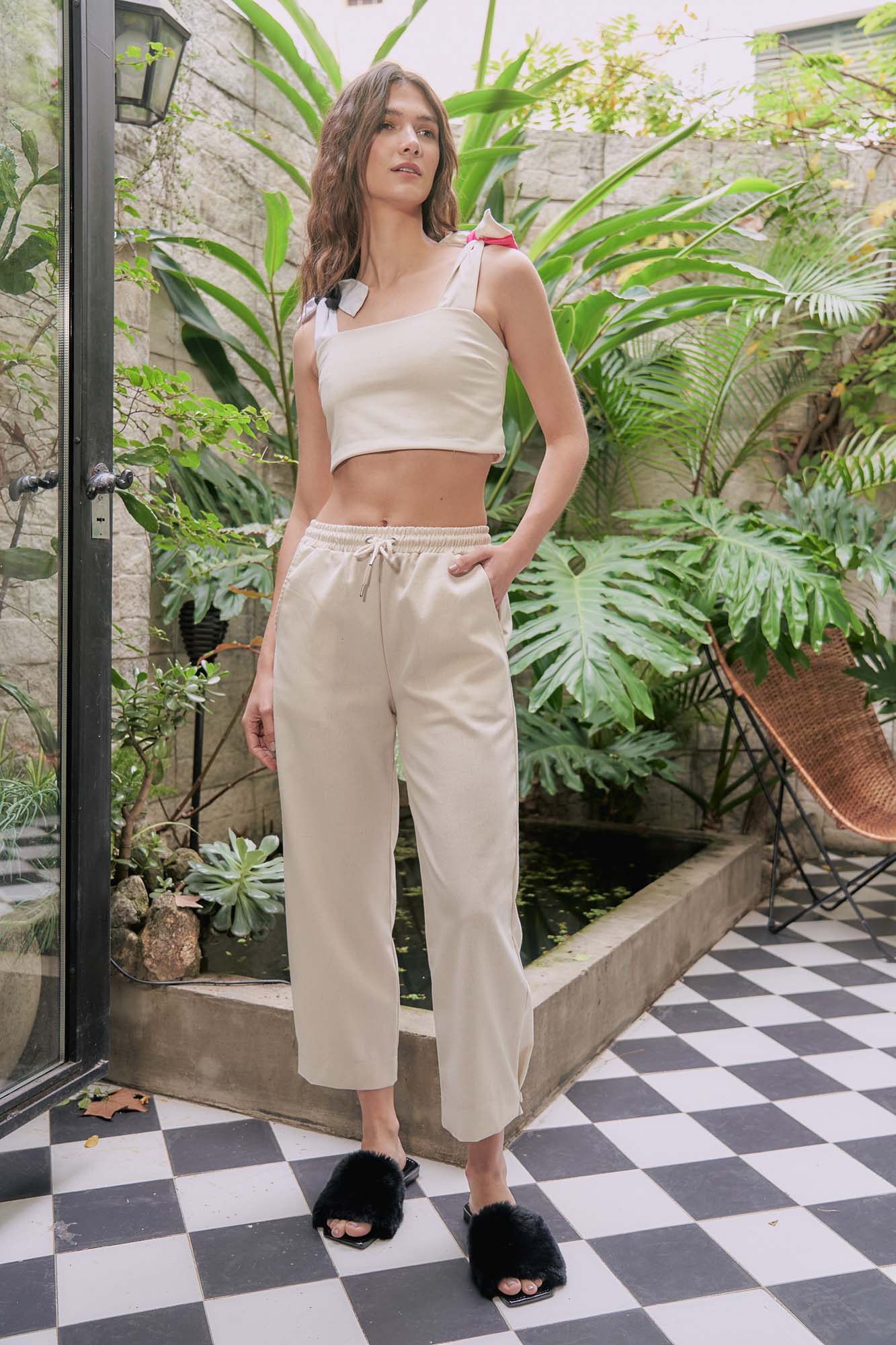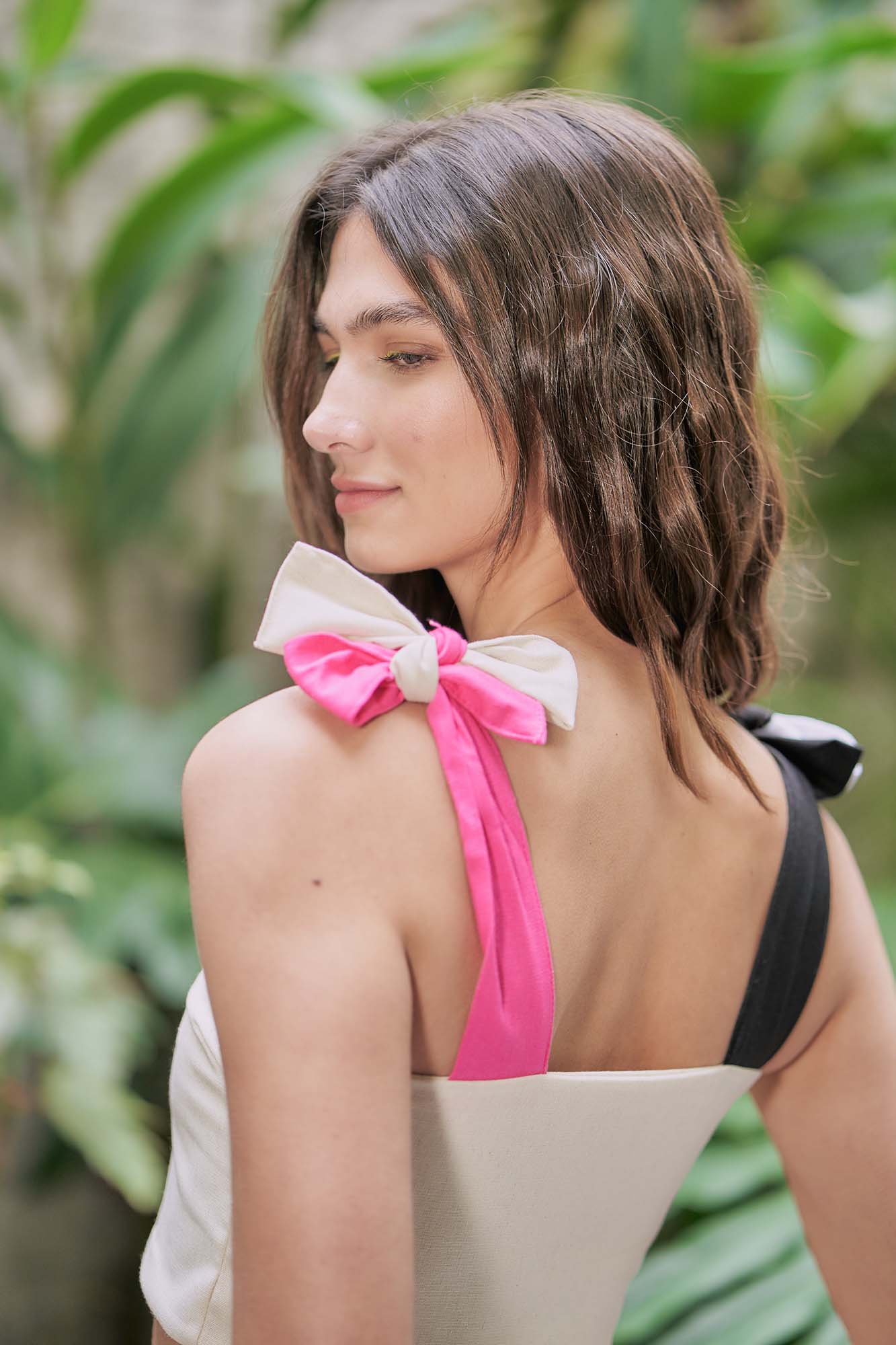 Top de lino con tiras combinadas. Las tiras de los breteles son de los mismos colores que el Pantalón Foley.