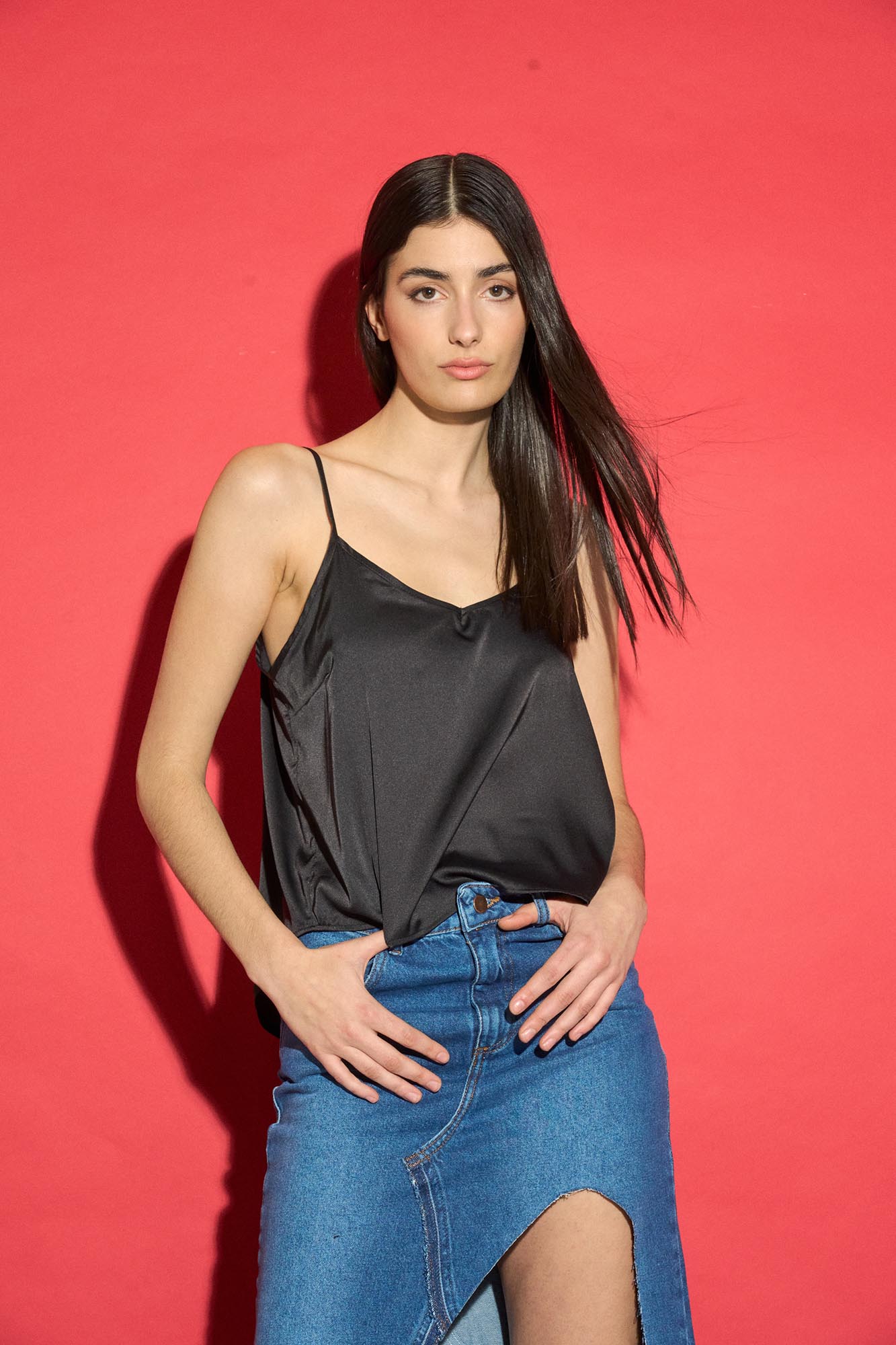 Blusa con breteles finitos regulables. Tiene espalda abierta con detalle de botones LC con pie