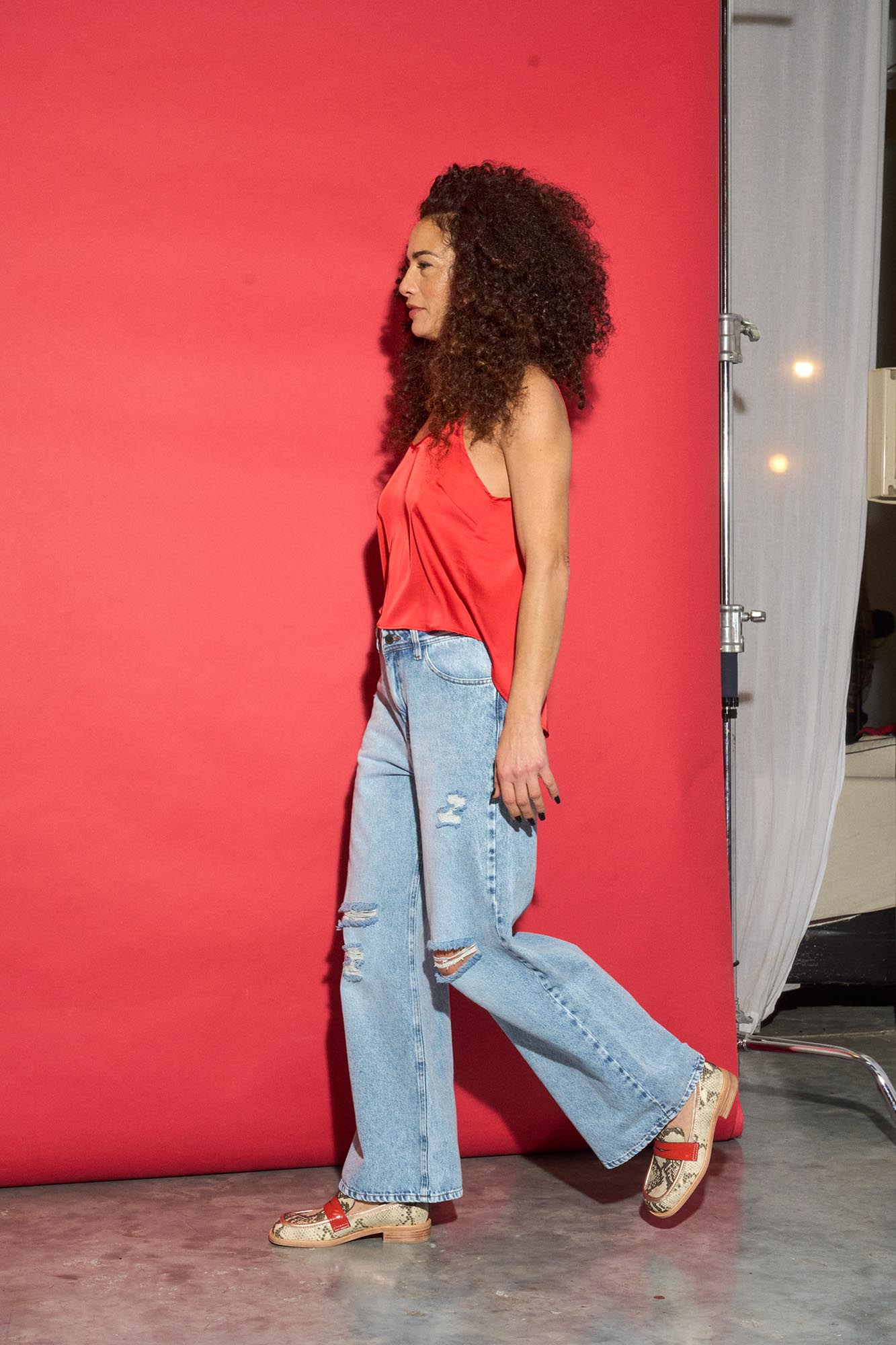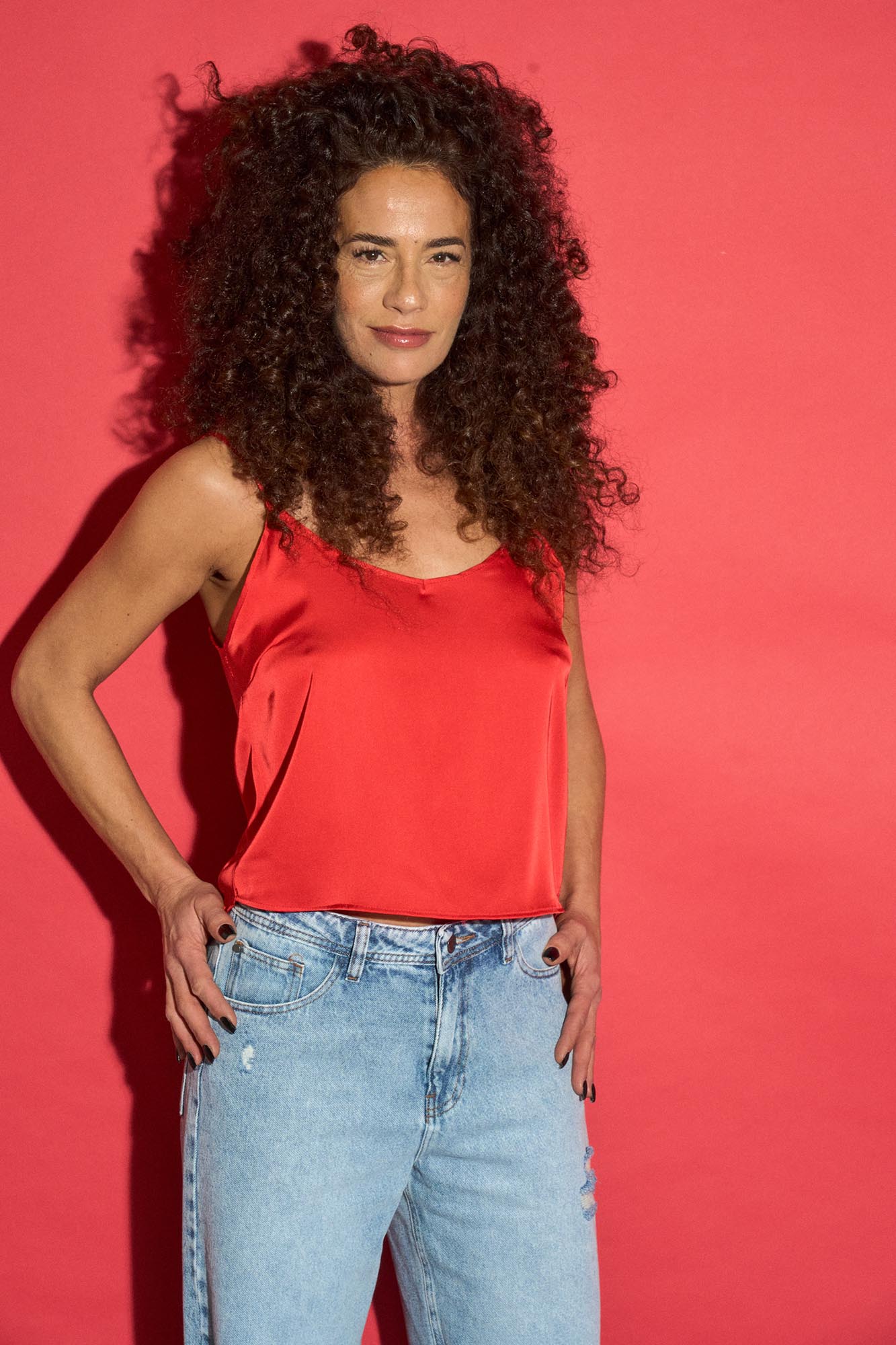 Blusa con breteles finitos regulables. Tiene espalda abierta con detalle de botones LC con pie