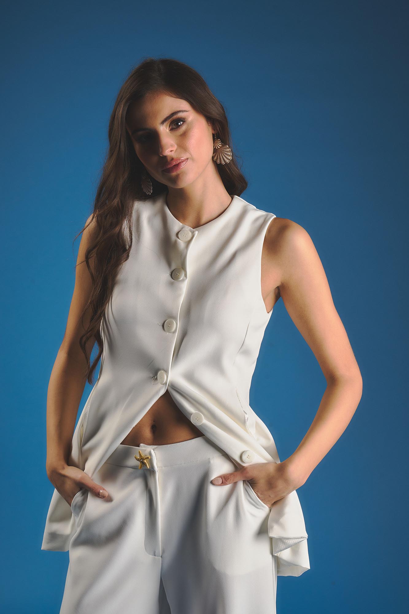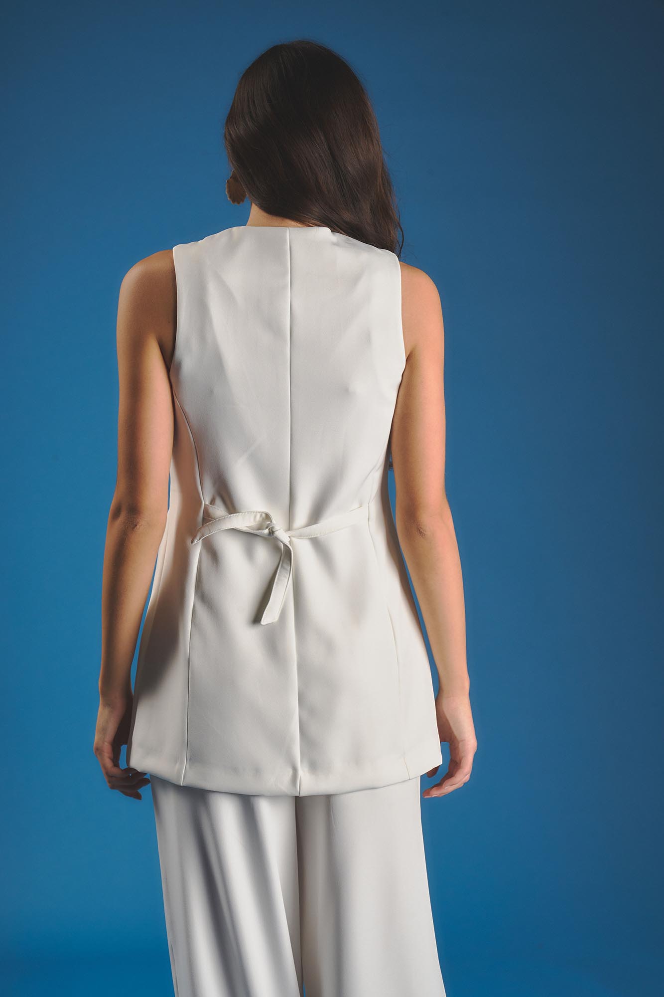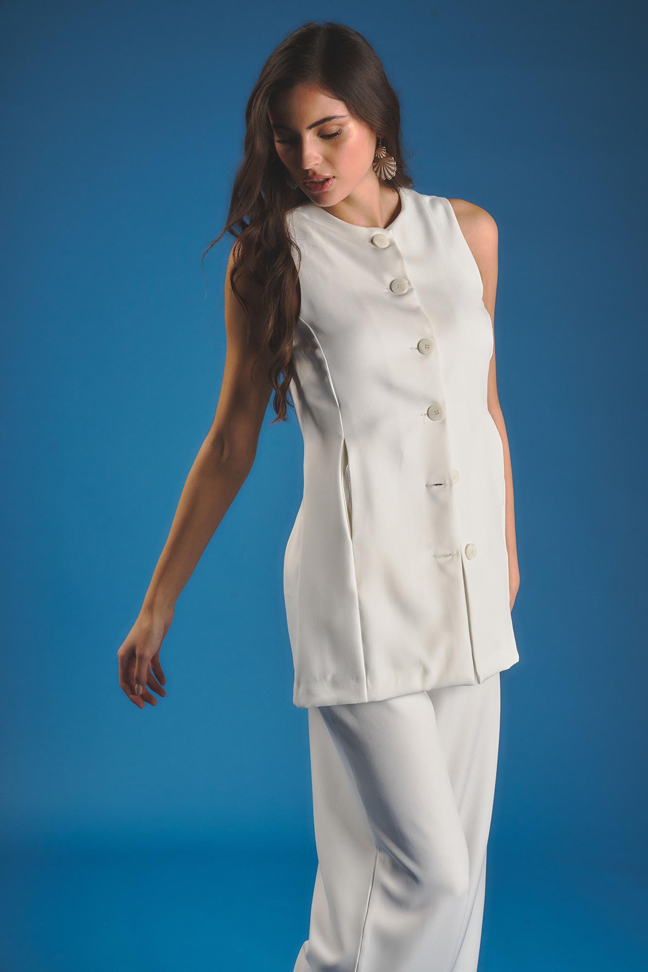 Chaleco largo corte sastrero. Botones de pasta y bolsillos
