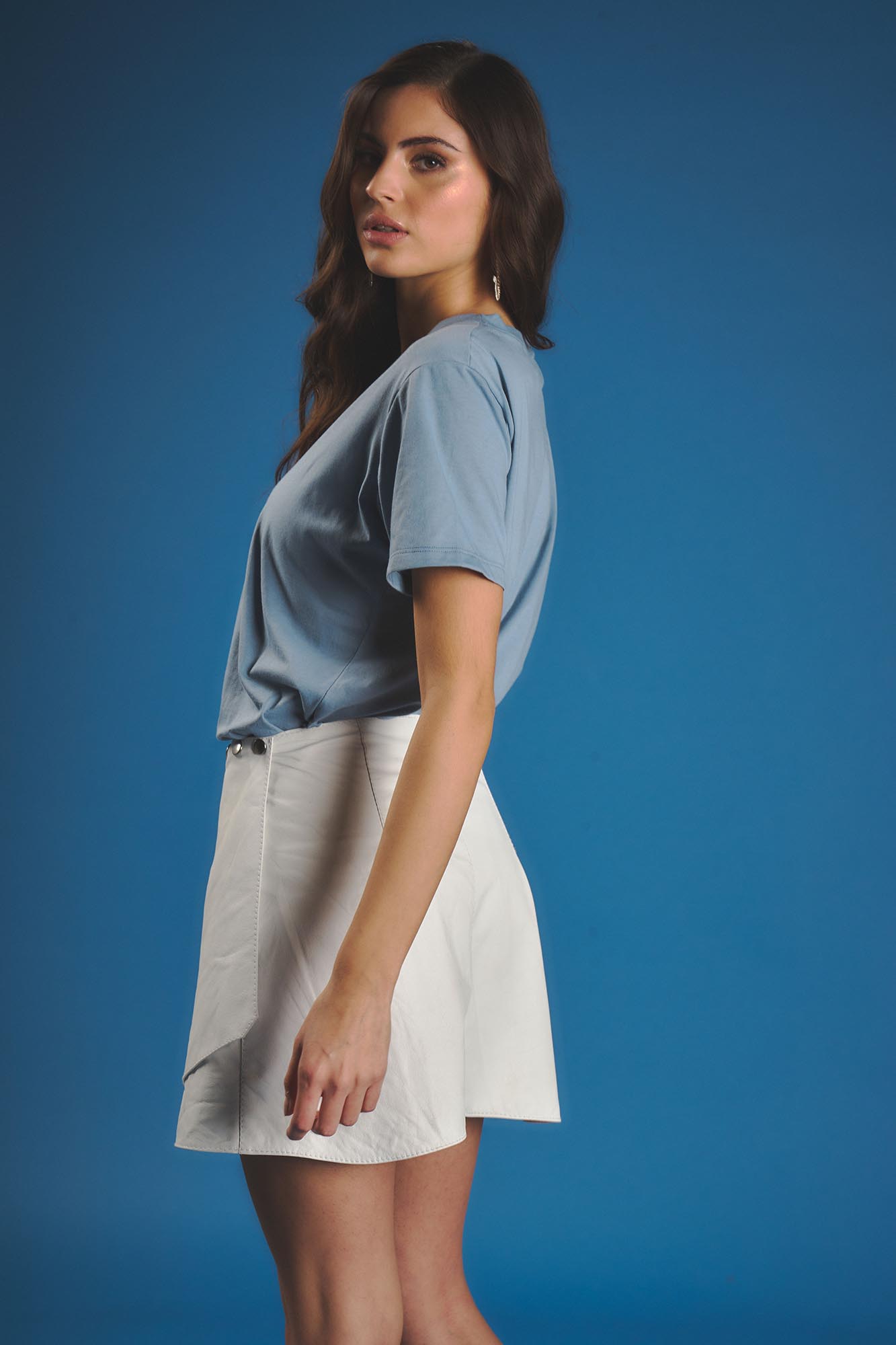 Falda corta, estilo portafolio con broches de metal LC que permiten regular el tamaño de la cintura Material: Cuero vacuno calidad exportación.