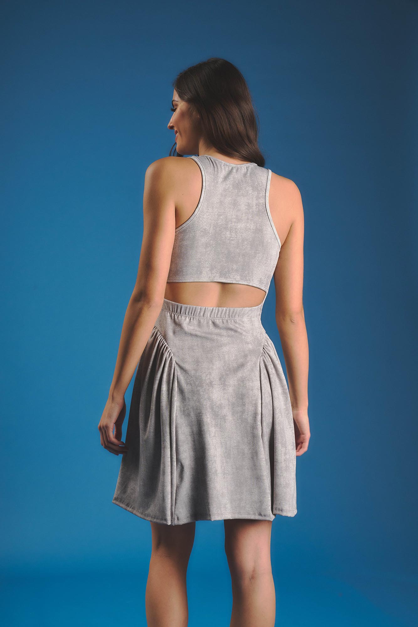 Vestido tipo musculosa en la parte superior, con corte en la cintura y volumen en las caderas. Tiene recorte con elástico en la espalda Se adapta a distintos cuerpos Material: Microfibra con lycra, estampa batik