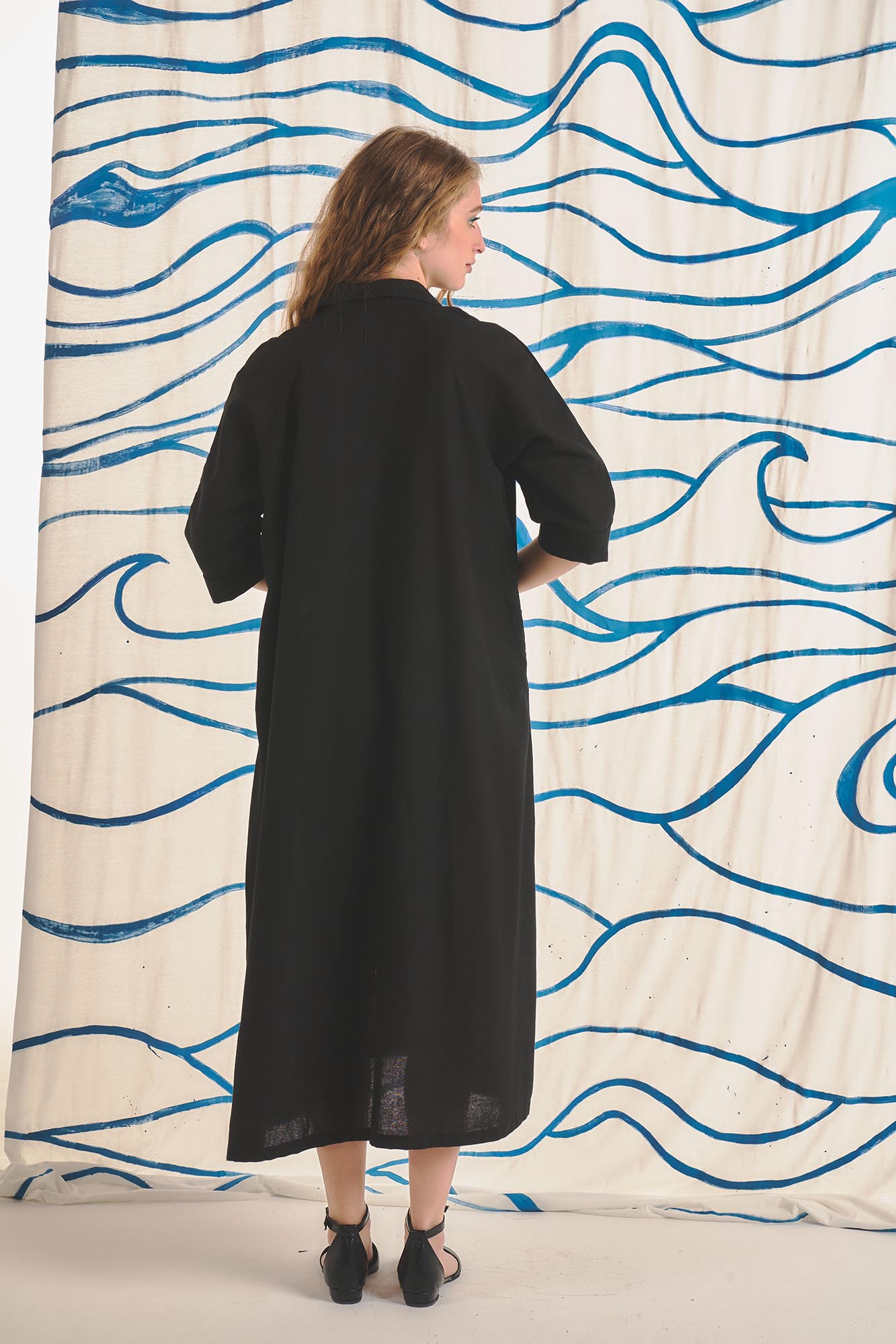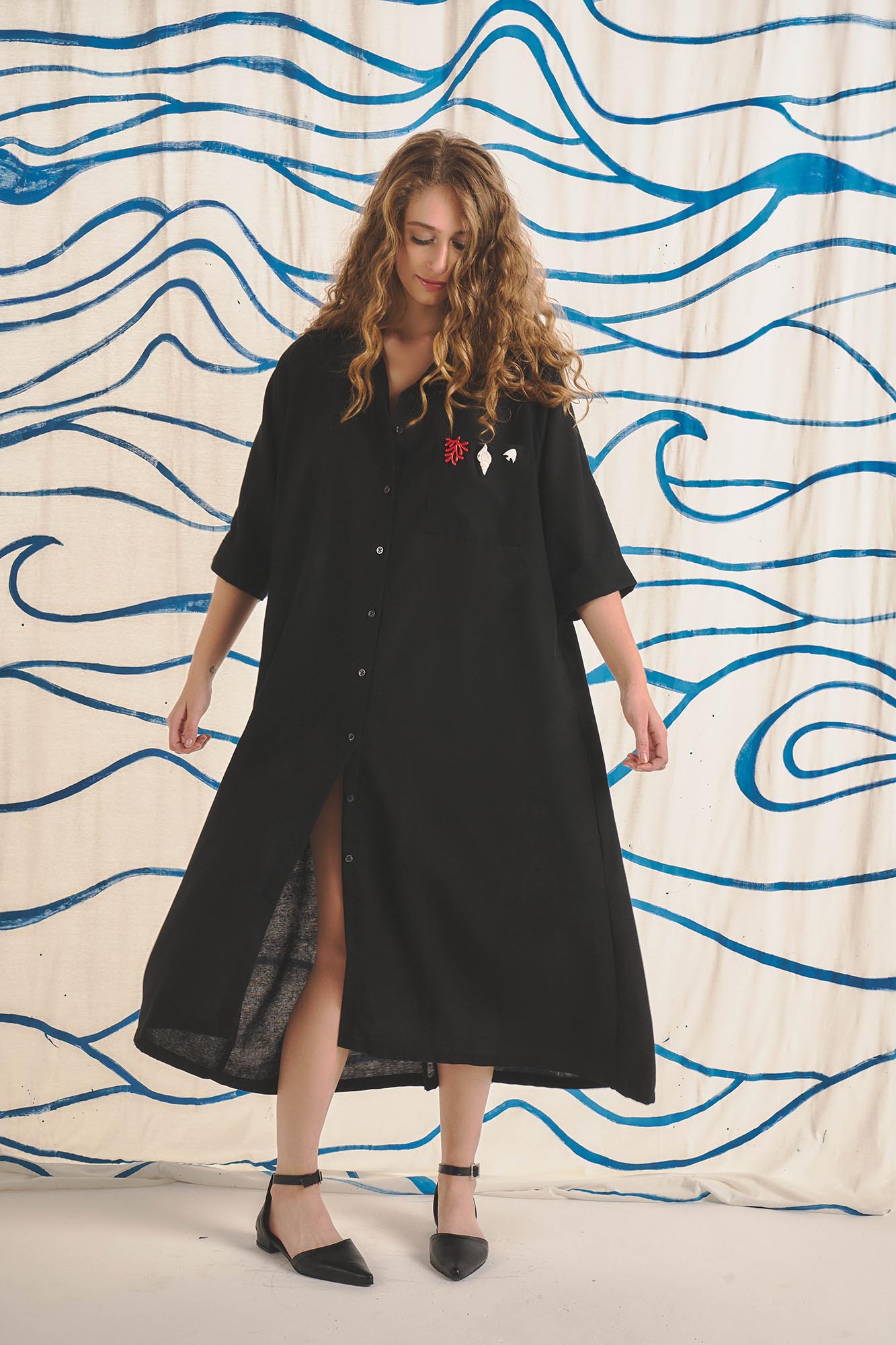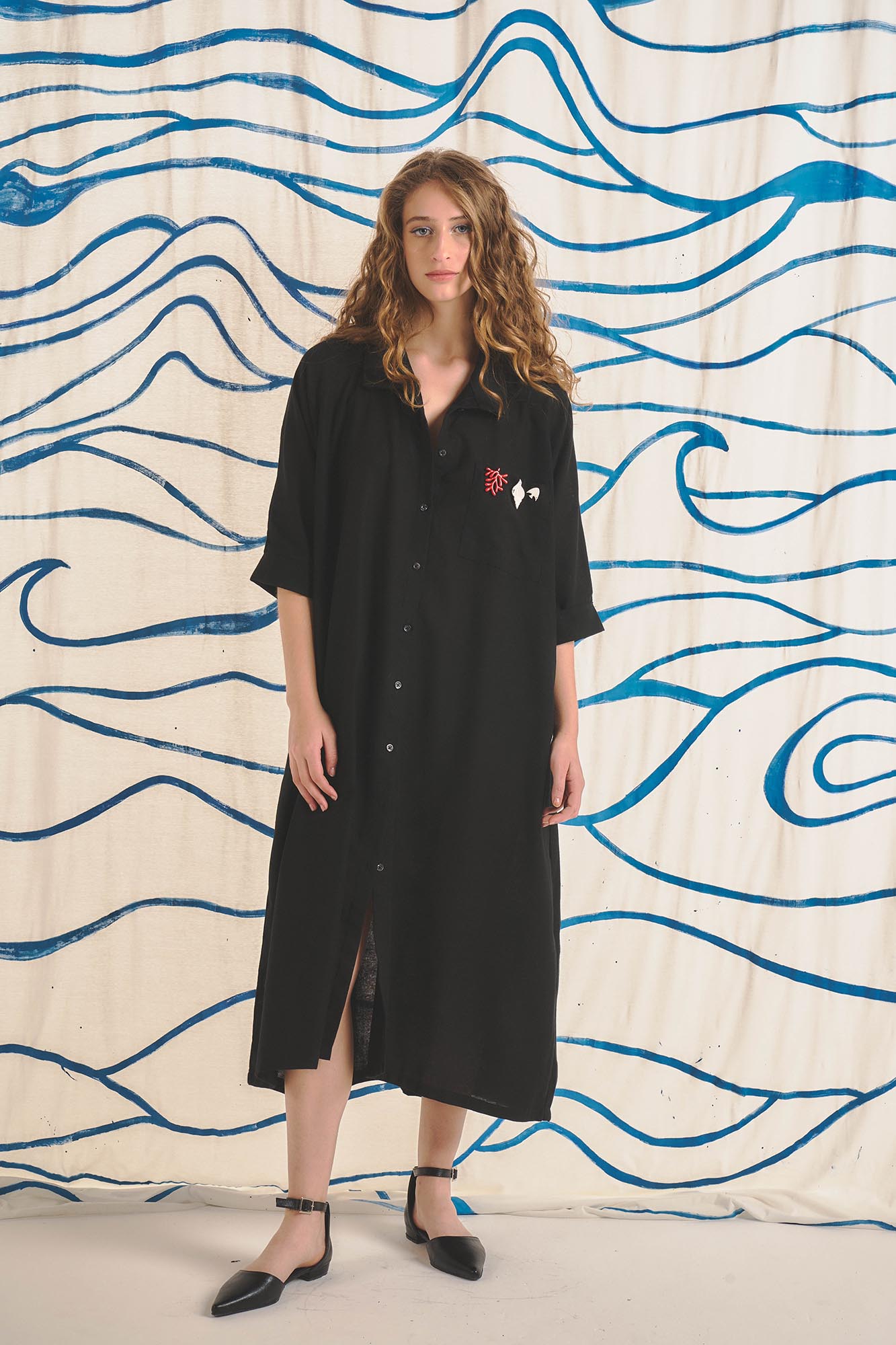 Vestido camisero, Manga al codo. Tiene bolsillo aplicado en el frente y bolsillos laterales