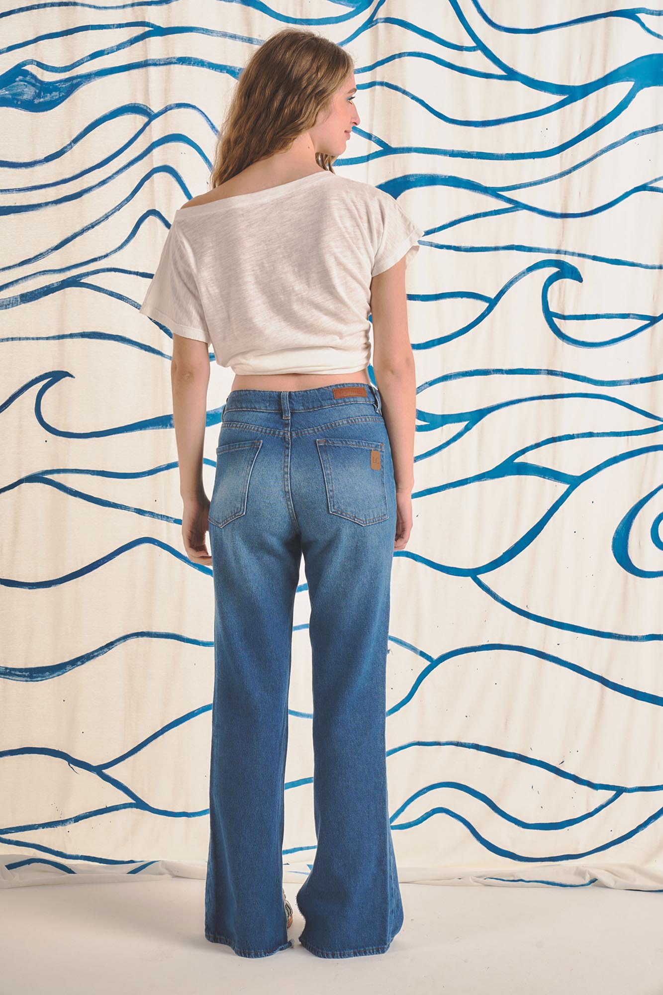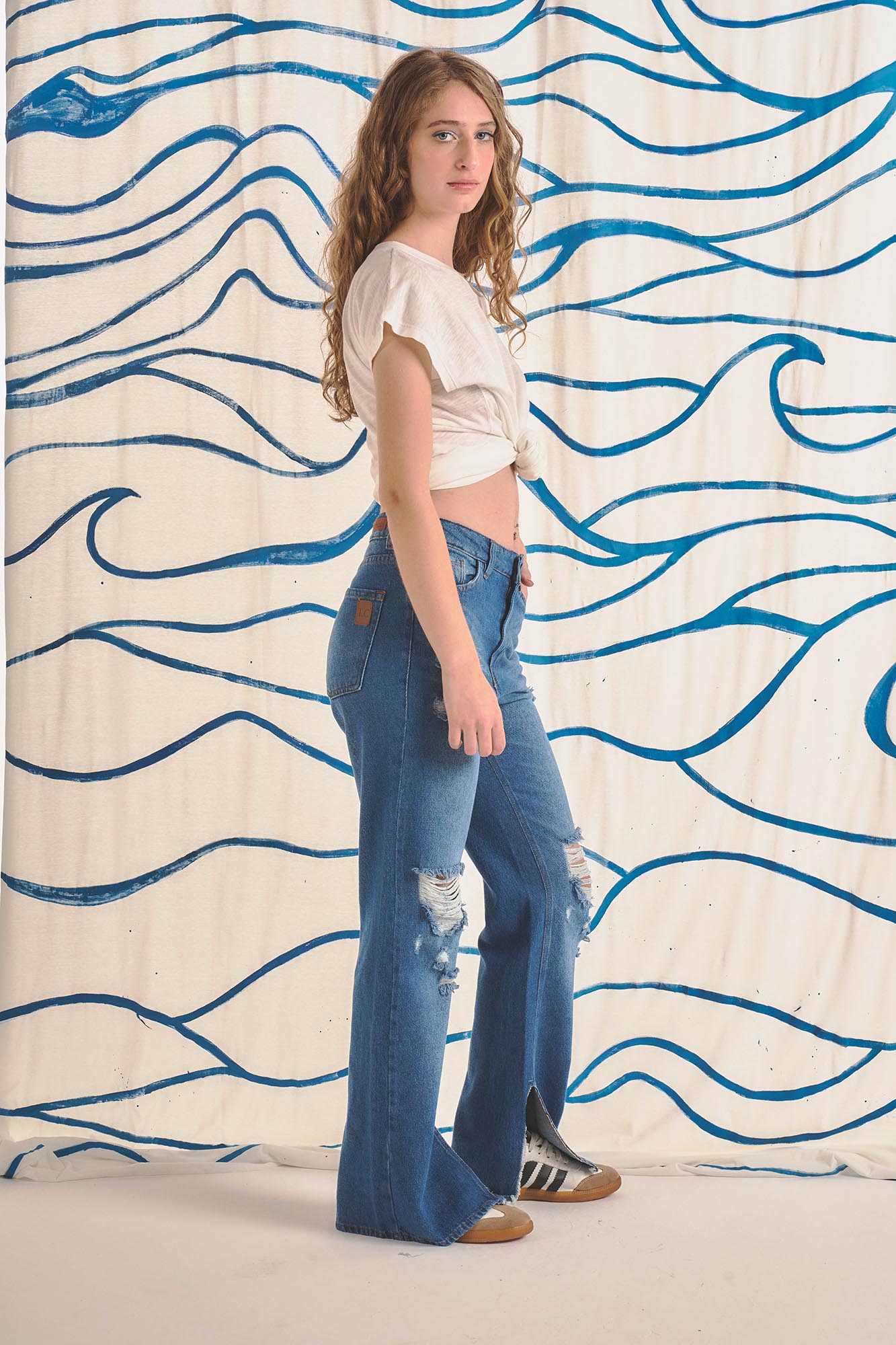 jean recto tiro medio con roturas y bota con tajo de 12 cm al corte