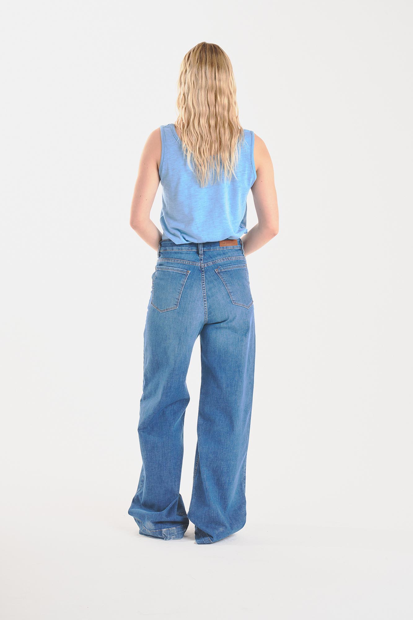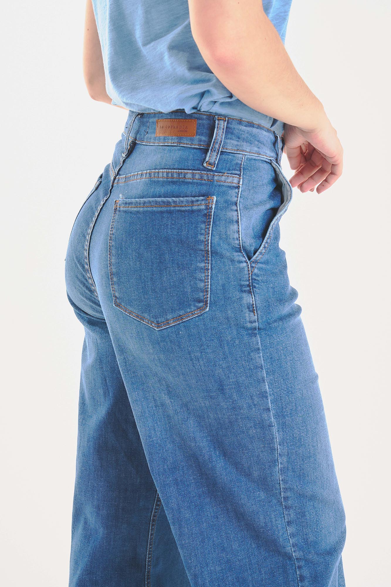 Guía de tallesjean palazzo con bolsillo en diagonal