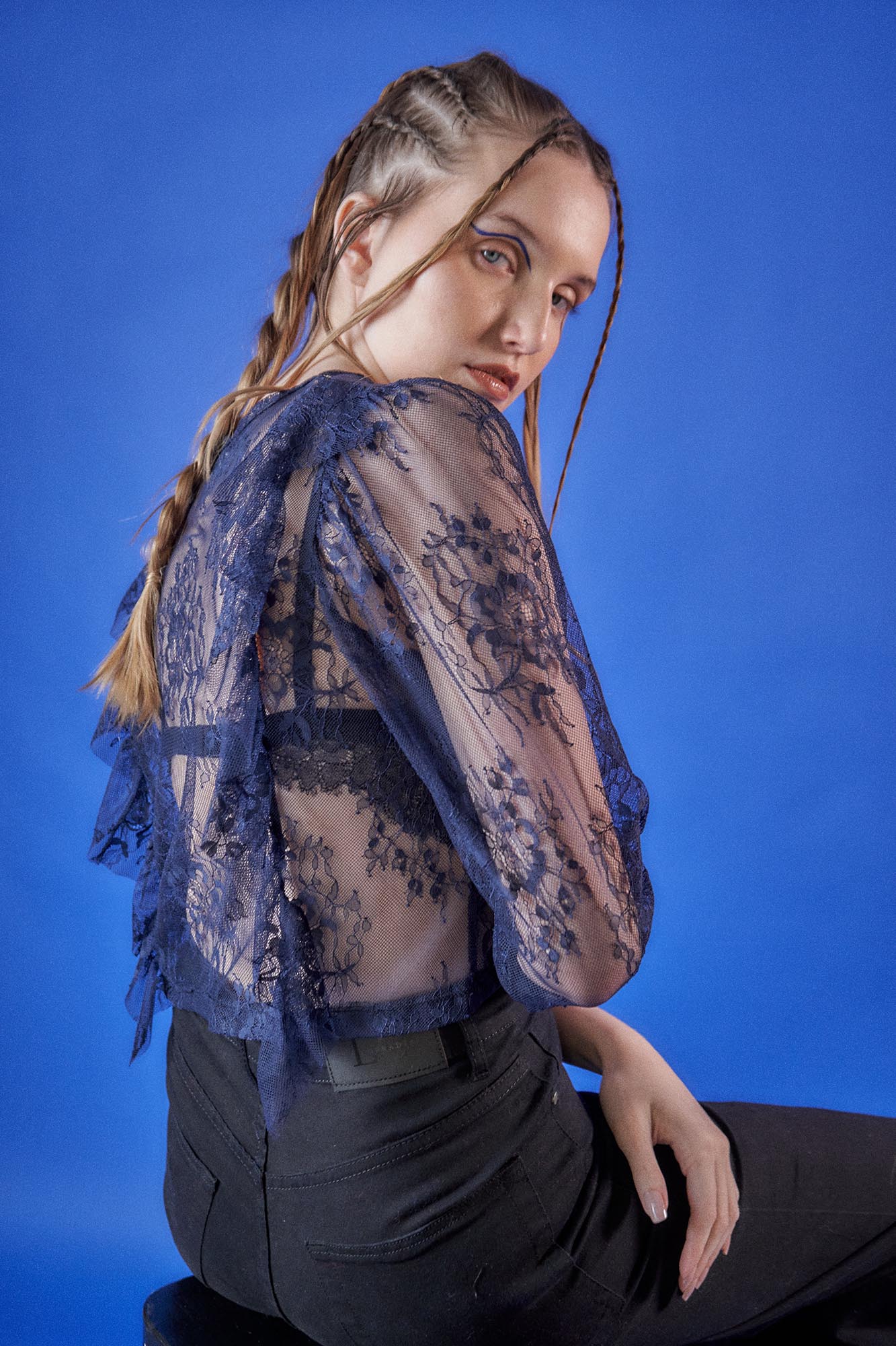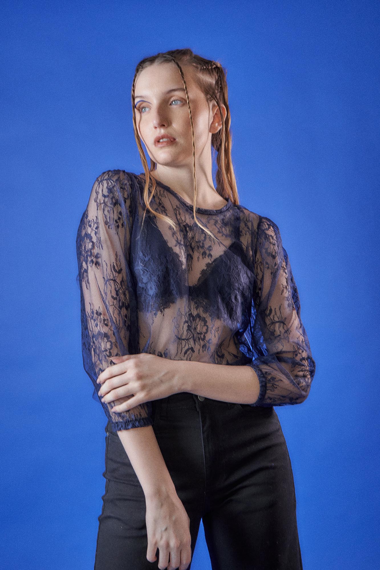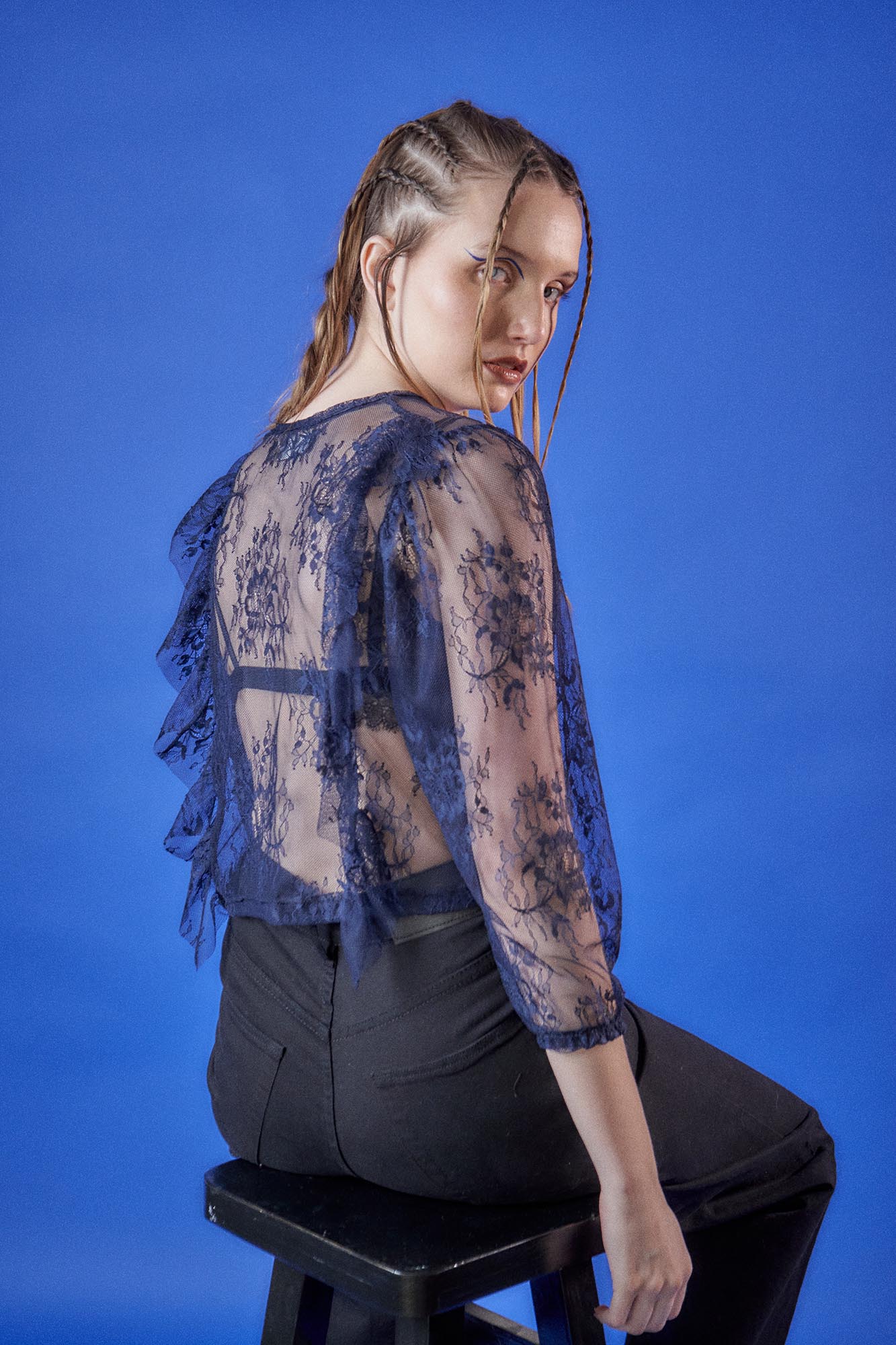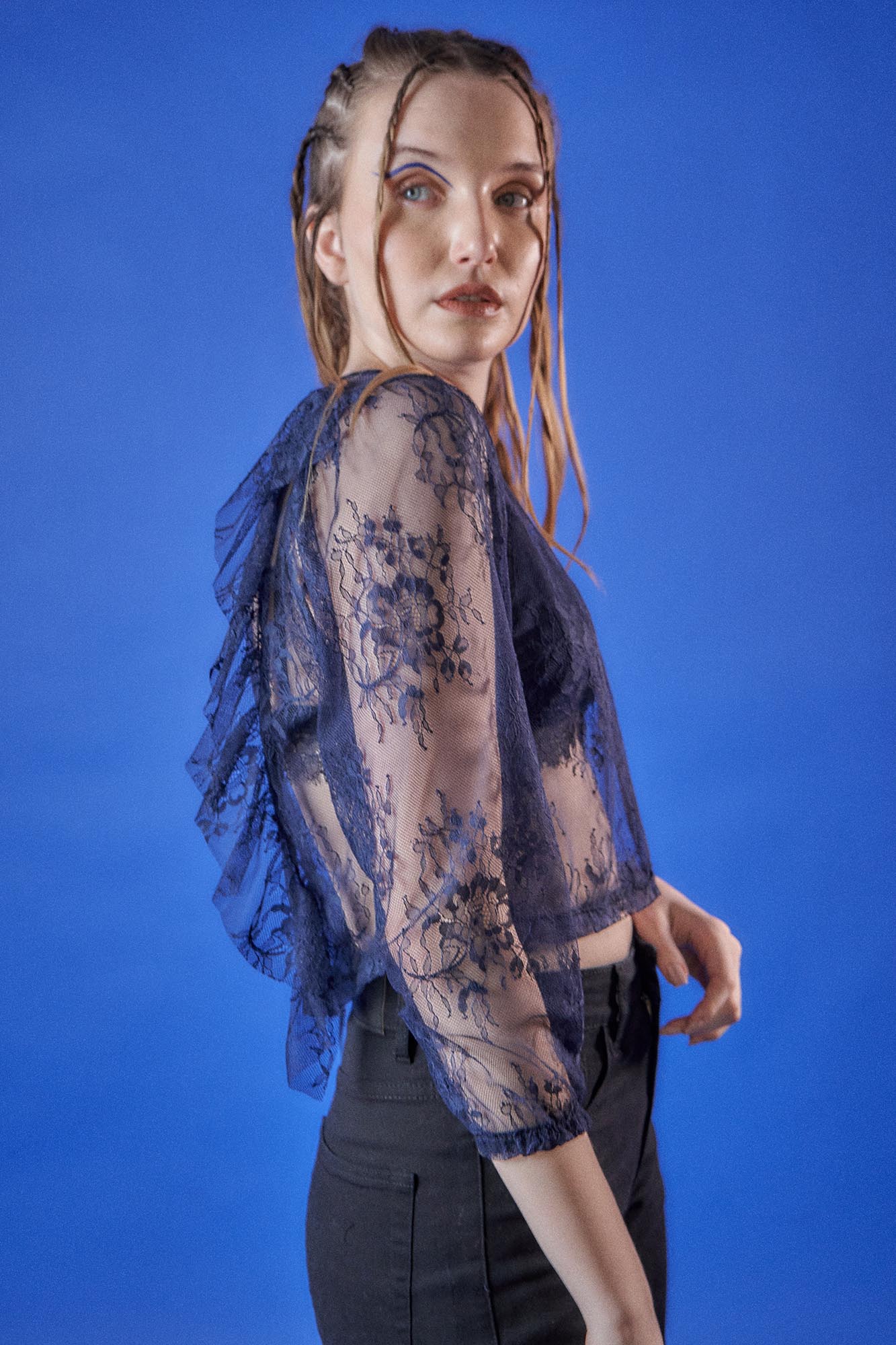 BLUSA CUELLO REDONDO CON MANGAS 3/4 Y VOLADOS EN LA ESPALDA. EL LARGO ES HASTA LA CINTURA. CALIDAD: ENCAJE SÚPER DELICADO